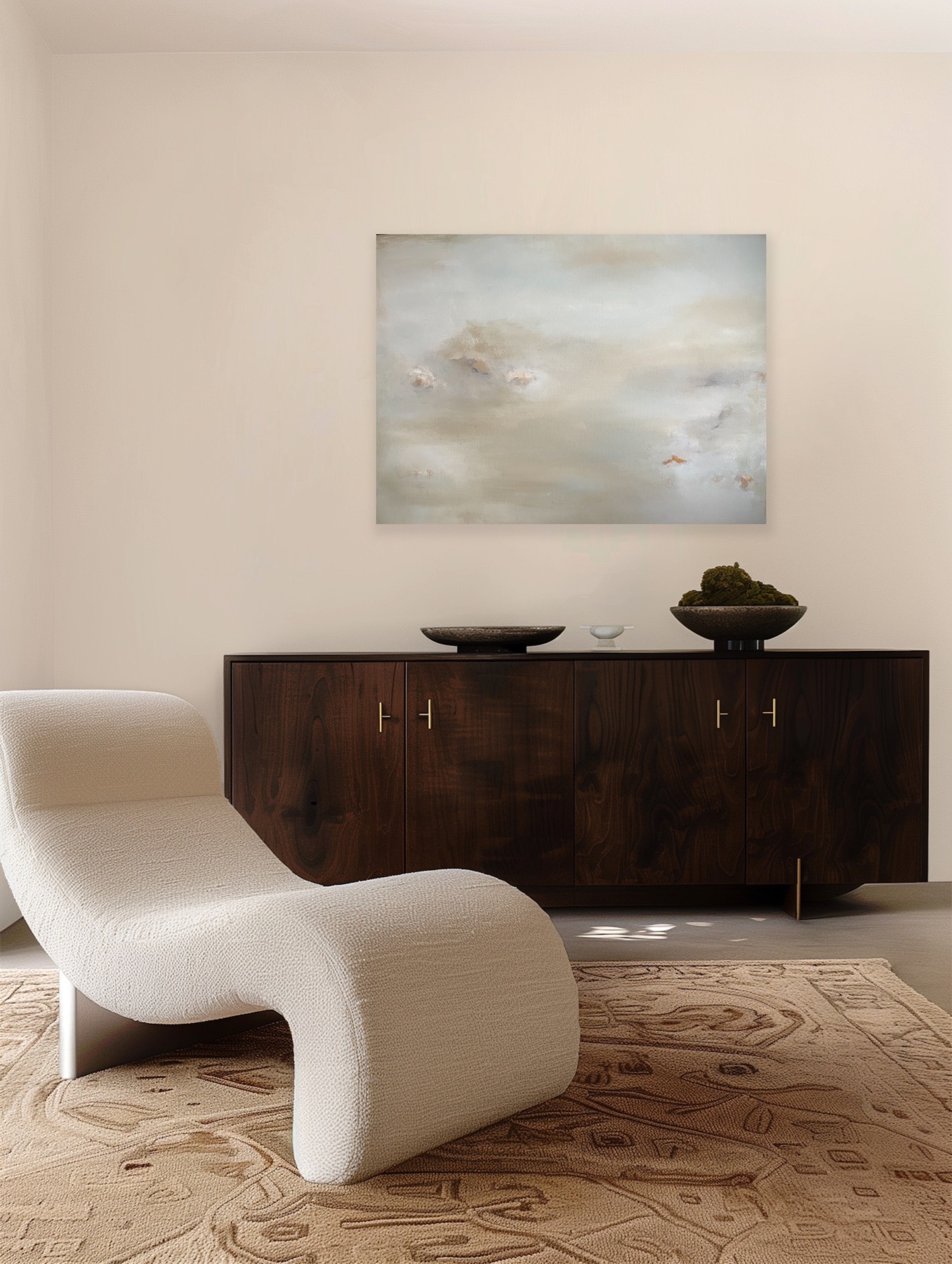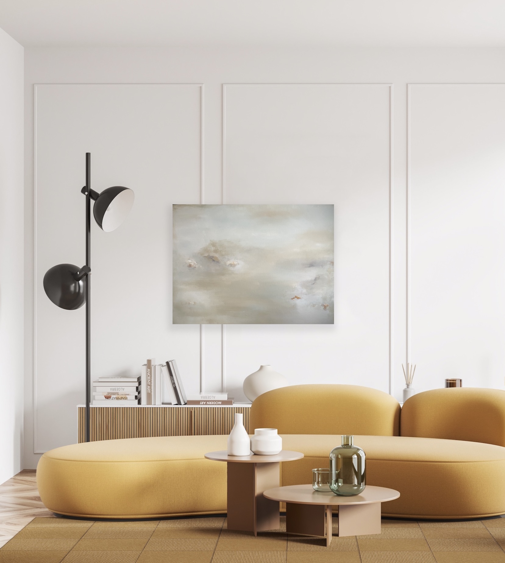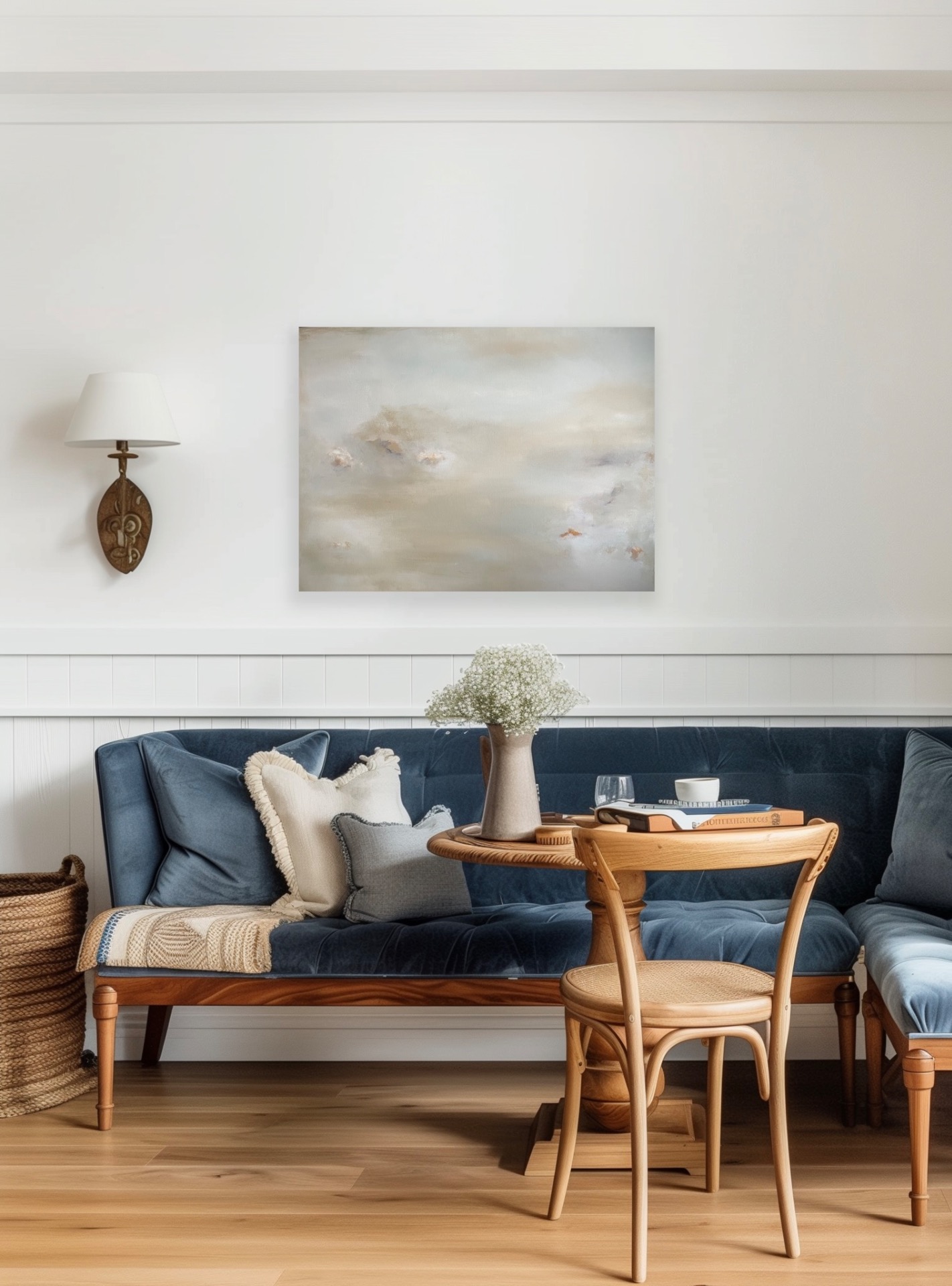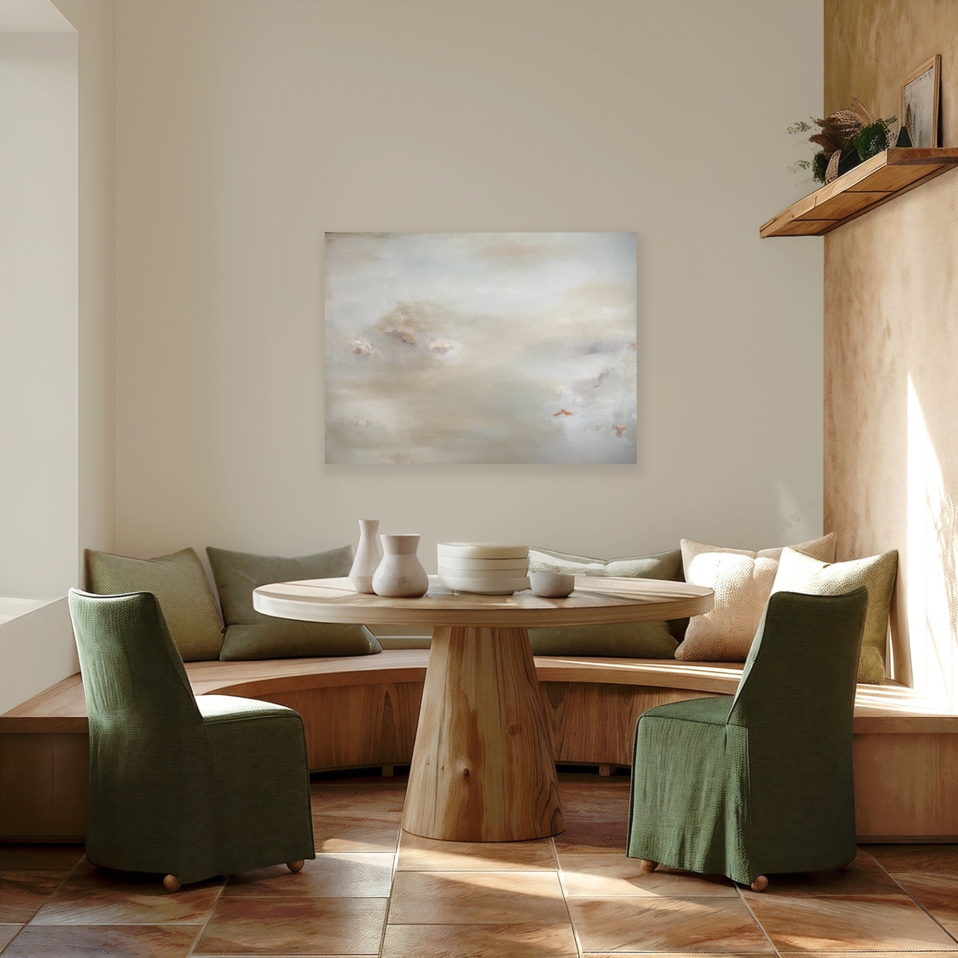 Bildene viser hvordan de duse fargene passer fint til både hvite, grå, beige og grønne vegger.
