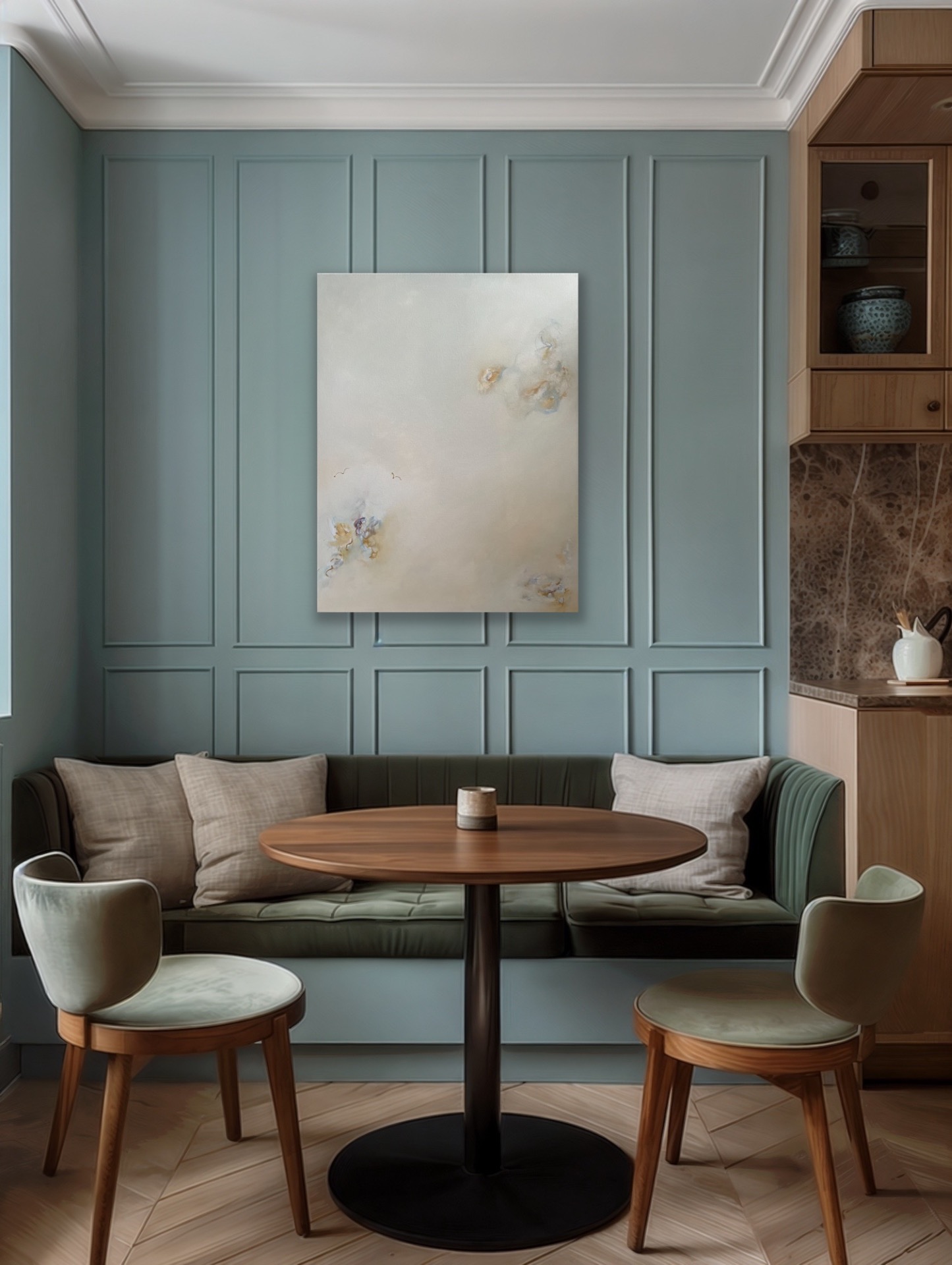 Bildene viser hvordan de duse fargene passer fint til både hvite, grå, beige og grønne vegger.
